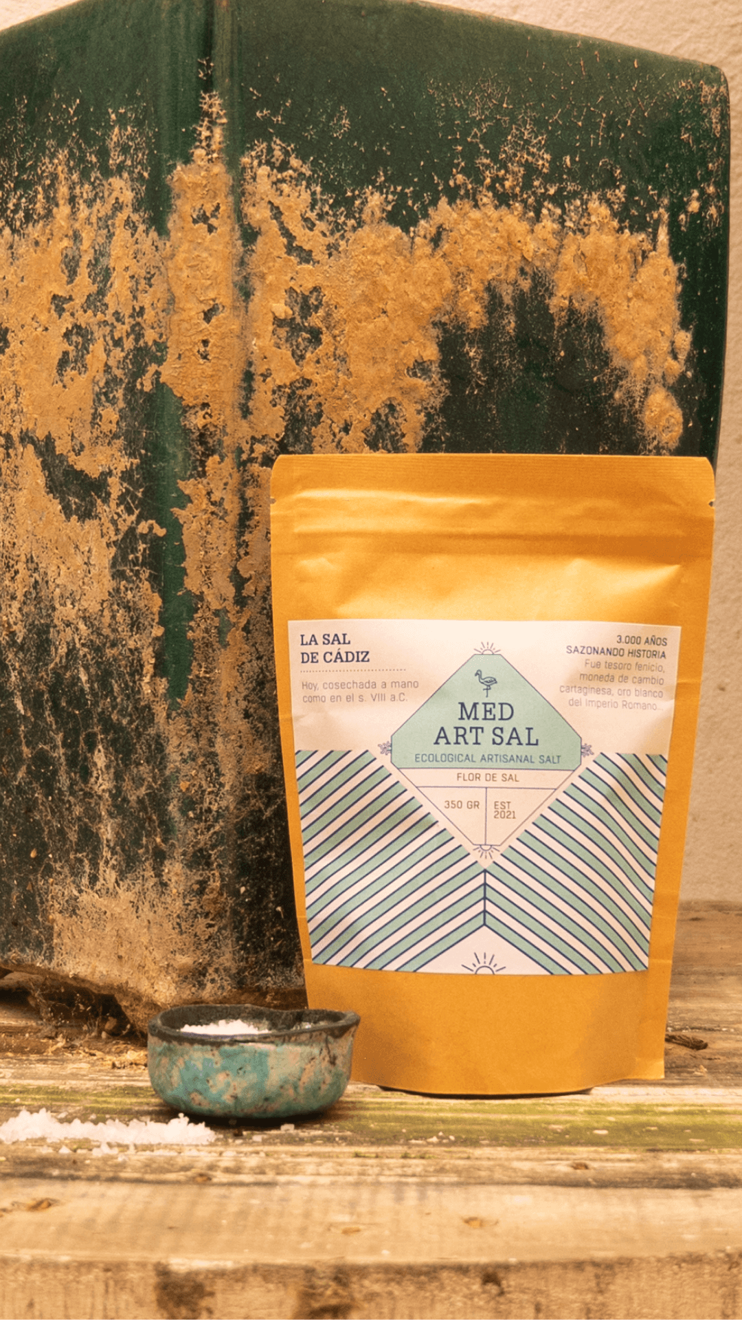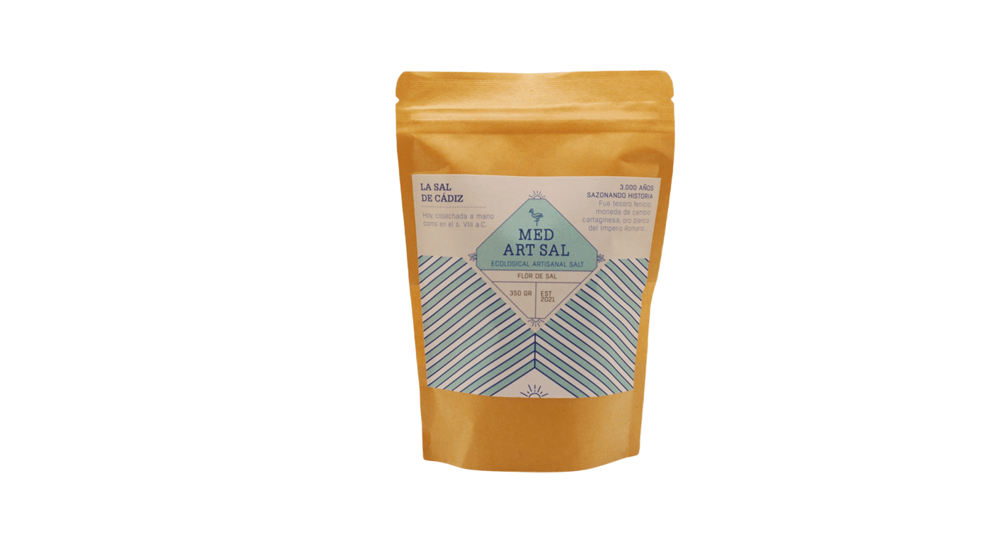 La Flor de Sal de la Bahía de Cádiz es la capa más pura y ligera que se forma en la superficie de las salinas al final del día, cuando el sol gaditano alcanza su plenitud. Recolectada a mano por los salineros con técnicas ancestrales, esta sal natural no se somete a refinados ni lavados, conservando intactos todos sus minerales marinos.