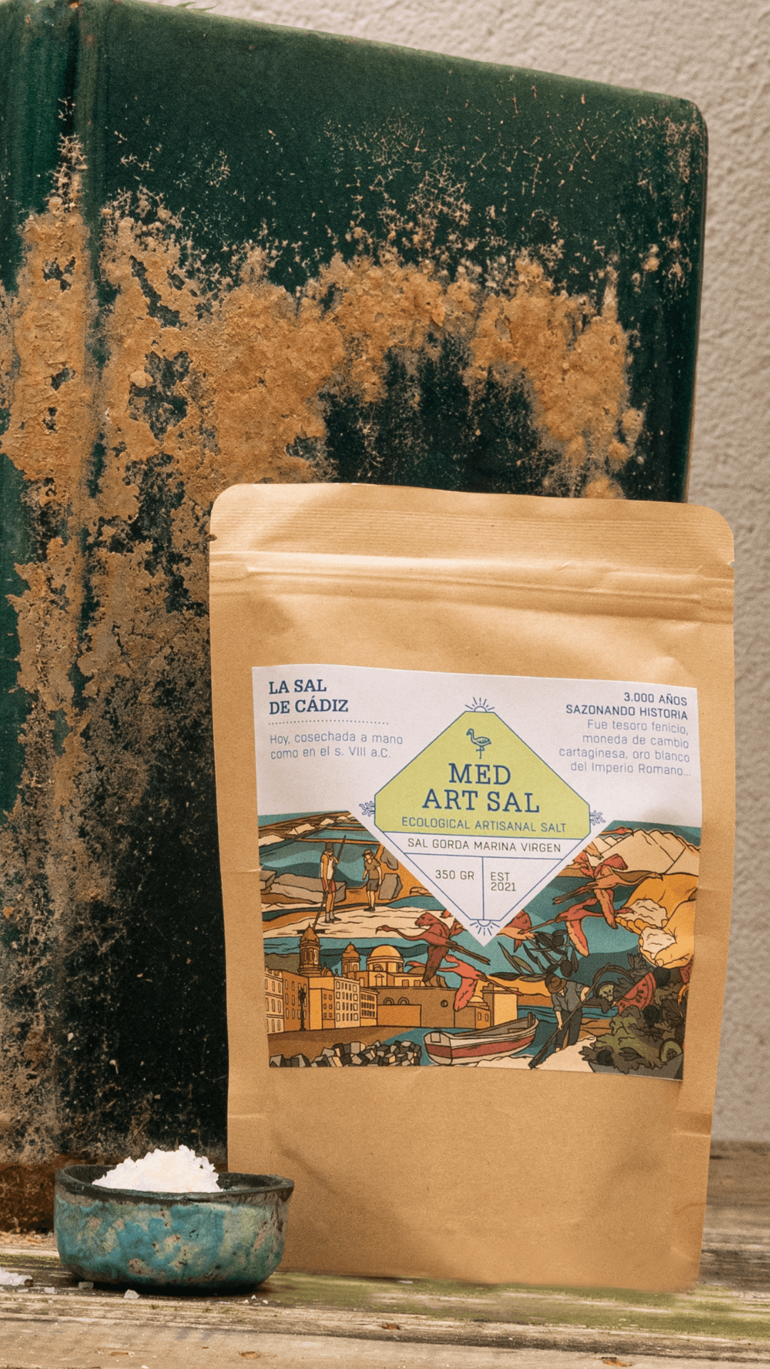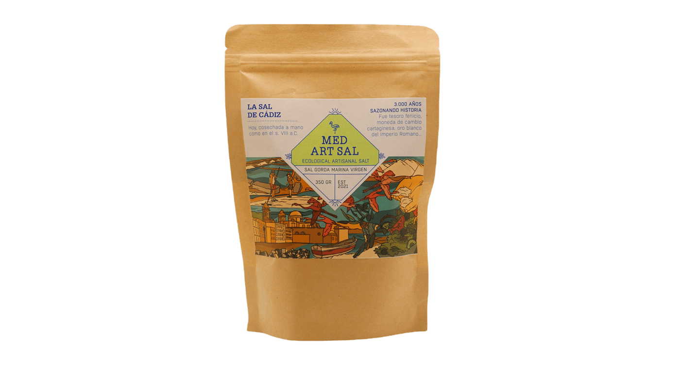 La Sal Gruesa Marina de la Bahía de Cádiz se obtiene mediante la evaporación natural del agua del mar en las salinas tradicionales, siguiendo un proceso 100 % artesanal. Sus cristales grandes conservan la pureza y el sabor original del Atlántico, sin aditivos ni procesos industriales.